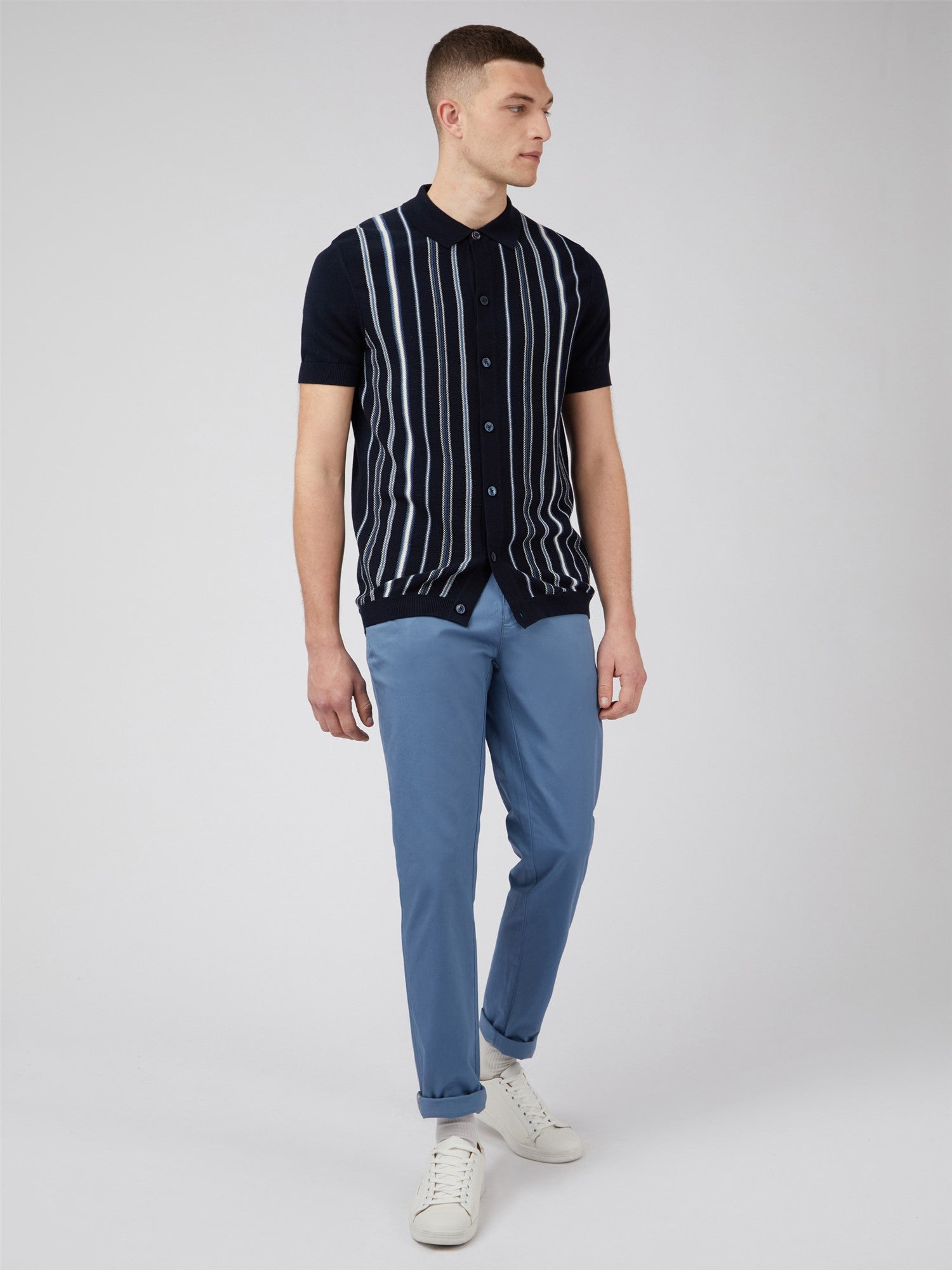 Ben Sherman Button Through Stripe Polo Dark Navy